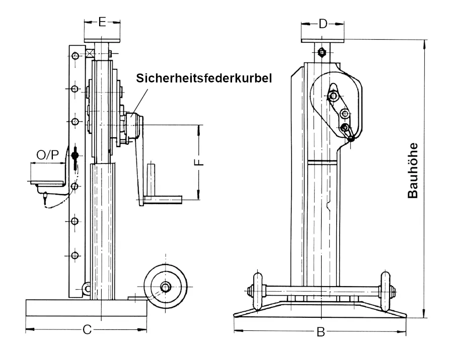 | Gewicht | 80 kg | 111 kg | Eigengewicht des Hebebocks je Ausführung. |