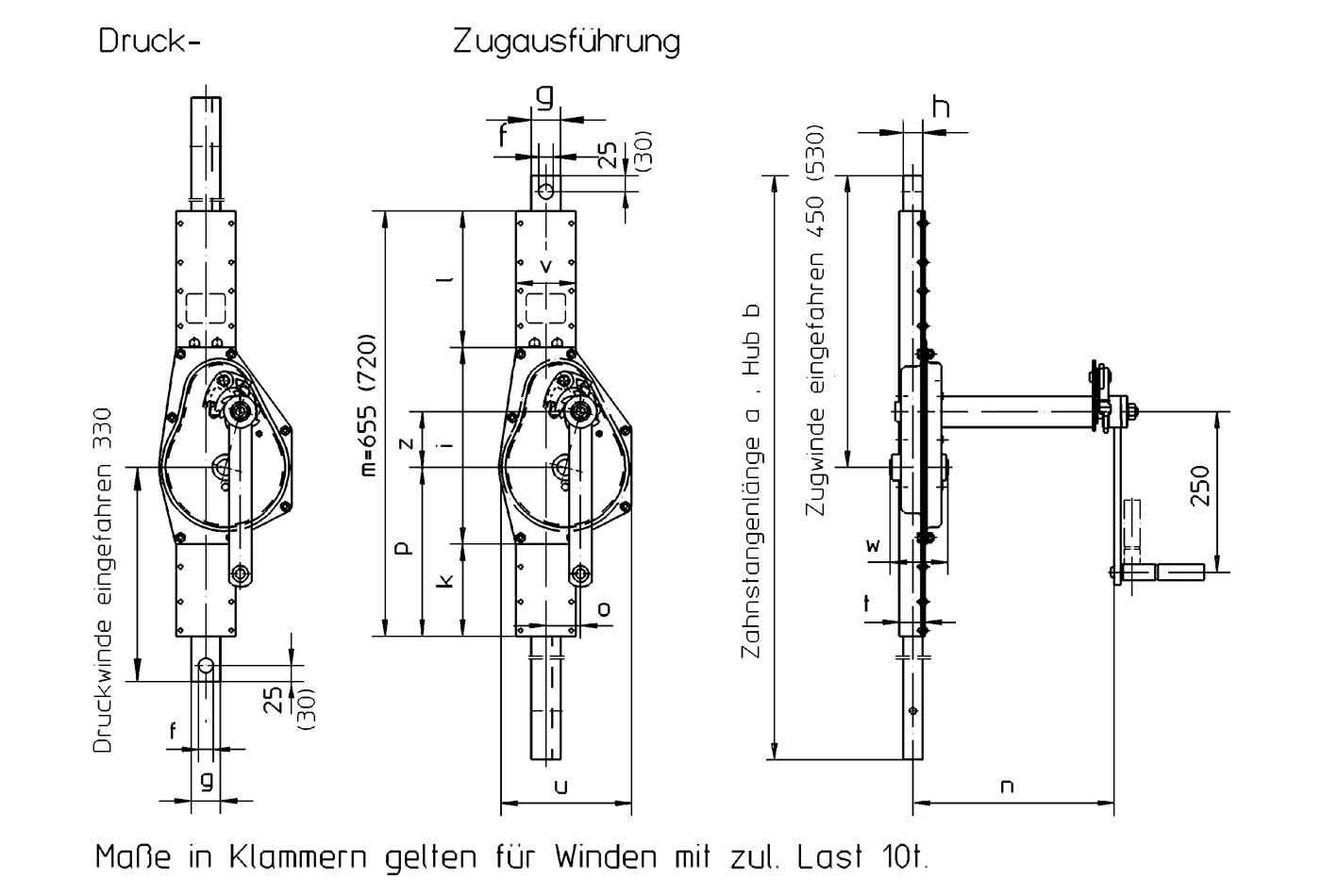 | Sonderoptionen | Abtriebswelle, Sperre, Sonderhublängen | zur Kopplung mehrerer Winden oder für spezielle Anwendungen |