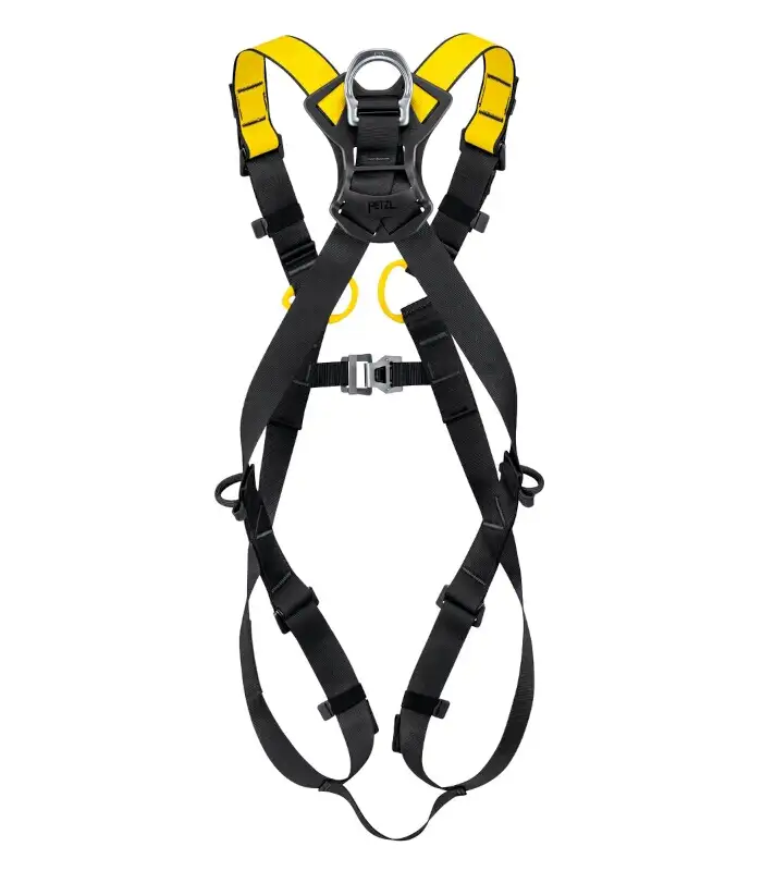 Anhand der farblich gekennzeichneten Gurtbänder (gelb/schwarz) sind Ober- und Unterseite des Gurts vor dem Anlegen leicht zu erkennen. Schulterträger und Beinschlaufen sind mit selbstverriegelnden DOUBLEBACK-Schnallen ausgestattet und lassen sich schnell und einfach einstellen.