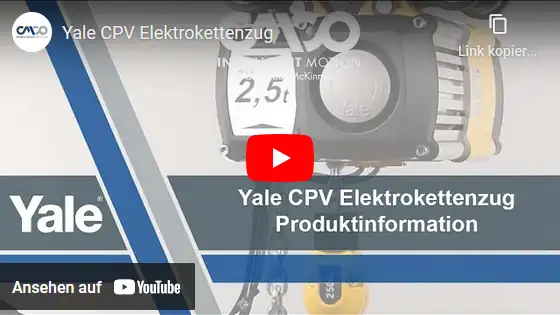Der von Yale konzipierte Elektrokettenzug Modell CPV bietet schon im Standardbereich eine Vielzahl an Features. Durch seine robuste und zugleich leichte Bauweise eignet er sich sowohl für den stationären Betrieb als auch für den mobilen Einsatz auf Baustellen.