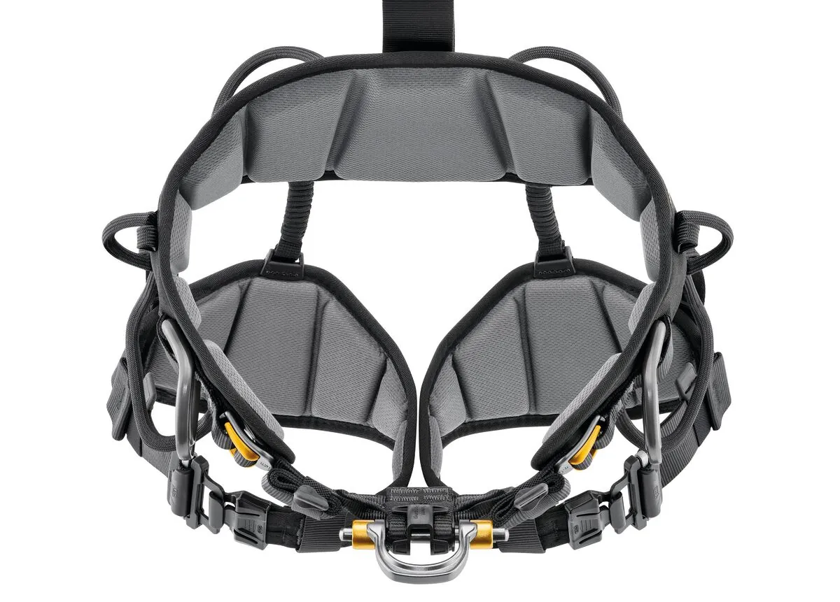 • Zentrale Halteöse: Für Abseilgerät, Verbindungsmittel für Aufstieg oder Arbeitsplatzpositionierung und Sitzbrett.