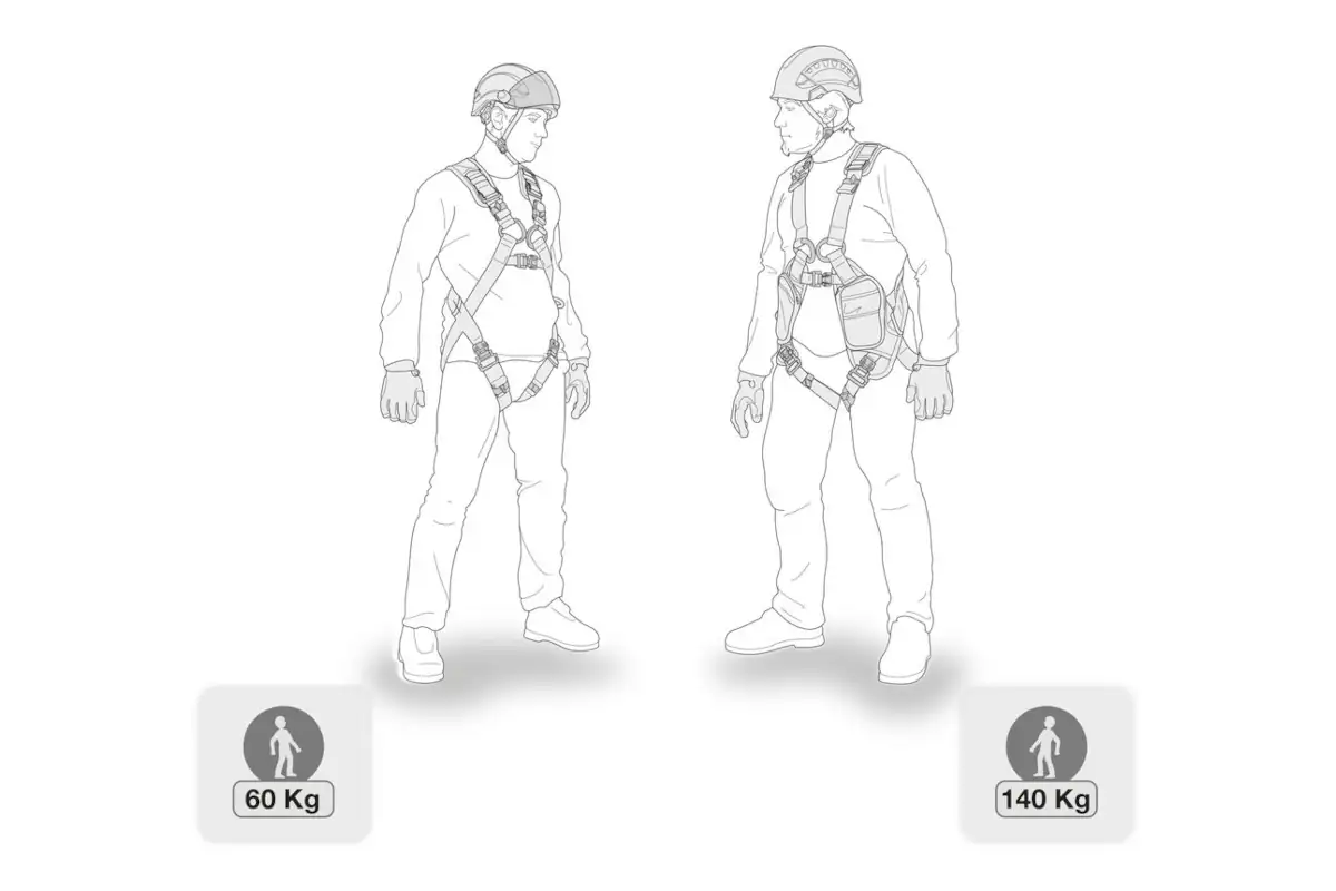 geliefert mit zwei MGO-Verbindungselementen mit großer Schnapperöffnung am Ende des Verbindungsmittels für die Befestigung an der Metallstruktur und einem OK TRIACT-LOCK-Verbindungselement für die Befestigung am Gurt.
