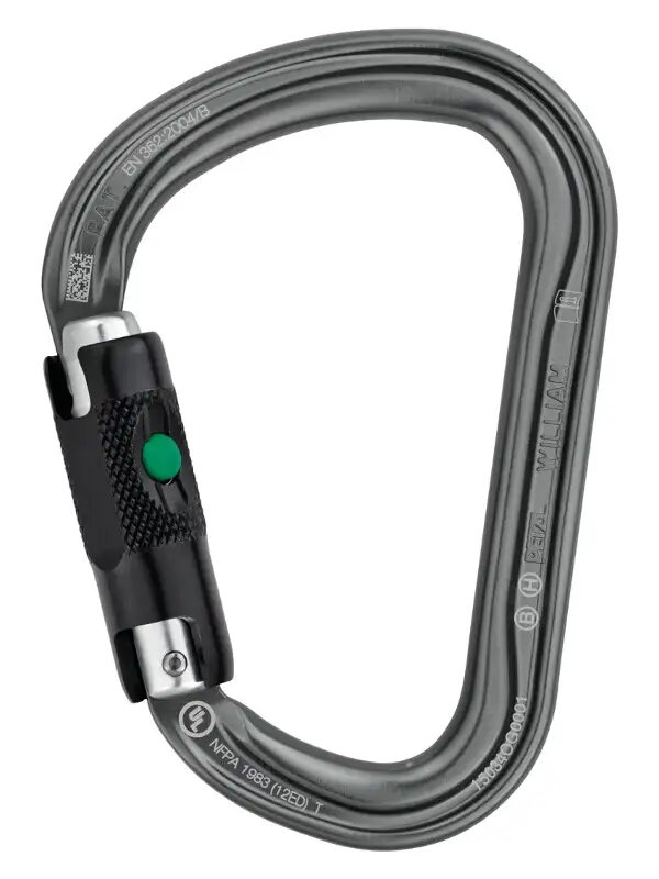 • SCREW-LOCK: manueller Schraubverschluss mit rotem Indikator, der sichtbar ist, solange der Karabiner nicht verriegelt ist.