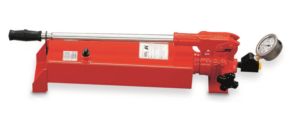 Um einen zügigen Arbeitsablauf zu gewährleisten, bietet Yale fast ausschließlich 2-Stufen-Handpumpen (mit Eilgang) an. Die Umschaltung von der 1. auf die 2. Stufe erfolgt automatisch. Der solide Aufbau (Ganz-Metall-Konstruktion), ein hoher Wirkungsgrad (optimales Ansaug-/Pumpverhalten) sowie gute Handlichkeit (Tragöse am Handhebel) zeichnen diese Handpumpen aus.