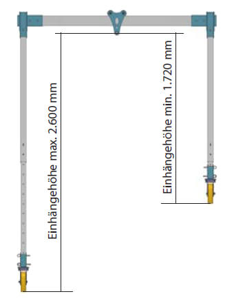 | Einhängepunkt an Laufkatze | 1720 - 2600 mm |