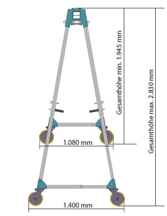 | Breite des Seitengestells | 1080 - 1400 mm |