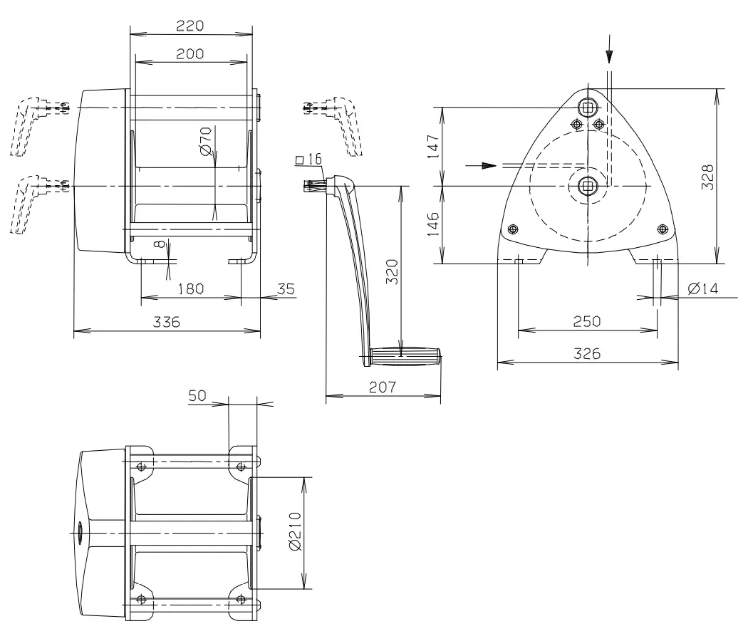 Lieferumfang: Winde Gamma 800 (Artikel-Nr.: 30270006) inkl. Kurbel (Artikel-Nr.: 39000153)