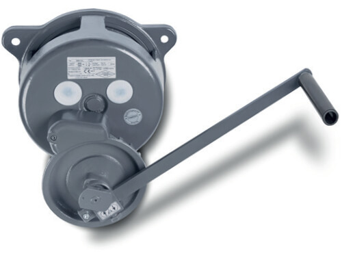 Die Kraftübertragung erfolgt über stabile Stirnräder mit Fettschmierung. Die Antriebs- und Trommelwelle ist mit robusten Rollenlagern leichtgängig gelagert. Eine Schmierung ist bei Wartungsarbeiten bequem über Schmiernippel möglich. Die Handkurbel ist stufenlos in der Länge verstellbar z.B. bei Teillast. Der Seilabgang ist normalerweise senkrecht nach oben. Es ist aber auch eine Überkopfmontage und ein Seilabgang nach unten realisierbar, sowie in jede andere Richtung auch.