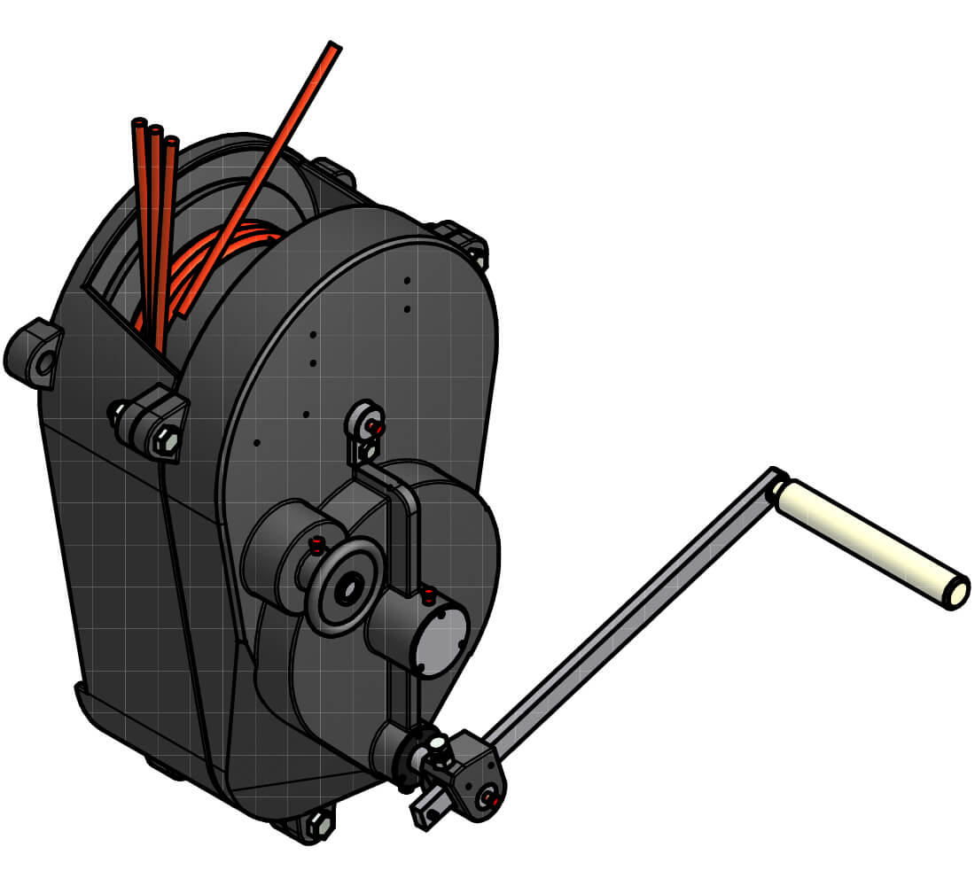 Der Handkurbelradius ist stufenlos verstellbar z.B. bei Teillast.