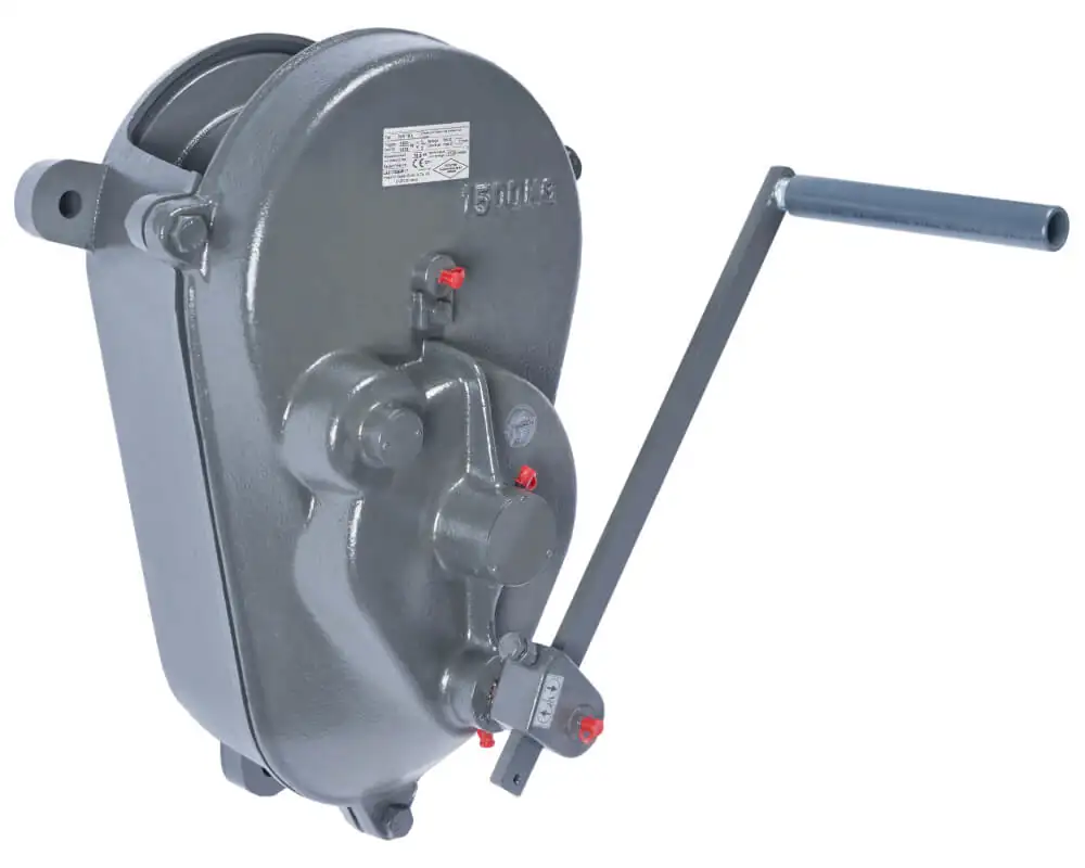 Diese Wandwinde widersteht jeder Witterung. Durch das stabile Graugussgehäuse und die gekapselte Brems- und Getriebeeinheit, dem robusten schweren Aufbau und der soliden Konstruktion ist sie für den Außeneinsatz wie gemacht. Die Kraftübertragung erfolgt über Stirnräder mit Fettschmierung. Die Antriebs- und Trommelwelle ist mit robusten Rollenlagern versehen. Ein Nachschmierung erfolgt über Schmiernippel, die bei Wartungsarbeiten von außen leicht zugänglich sind.