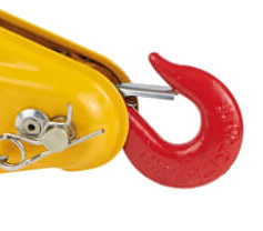 Der Yaletrac Seilzug verwendet ein Spezialdrahtseil mit Stahleinlage und 6 Litzen, von denen eine eingefärbt ist. Auf dem Lastende ist ein eingekauschter Ösenhaken mittels Presshülse mit dem Seil verpresst. Zum leichteren Einführen in das Gerät wurde das andere Ende mit einer Spitze versehen.