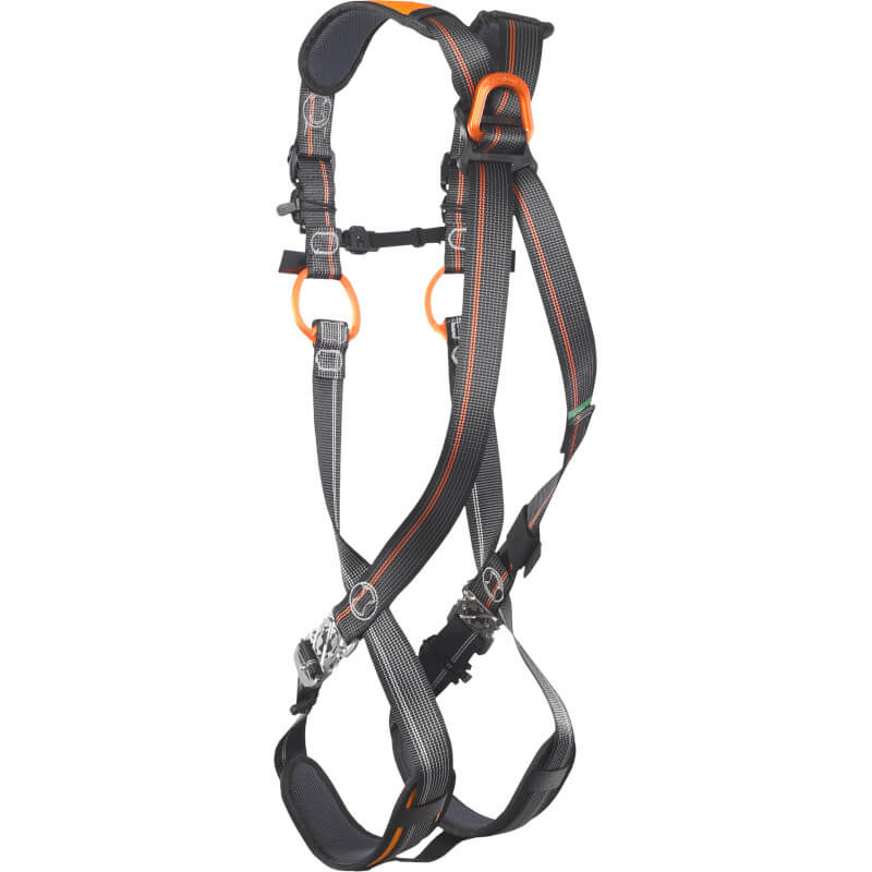 Der Auffanggurt besitzt zwei Auffangösen nach EN 361, eine Dorsale über der Rückenplatte und eine Sternale, im Brustbereich, bestehend aus zwei orangenen textilen Anseilschlaufen. Sie sind zur gemeinsamen Benutzung zugelassen und für höchste Sicherheit mit Abriebindikator ausgestattet. Beide sind mit der Beschriftung A/2 gekennzeichnet und müssen bei Verwendung mittels Karabiner nach EN 362 verbunden werden.
