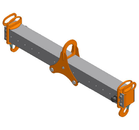 Die Alu-Traverse ATV dient als verstellbare Lasttraverse unter Kranen und Hebezeugen, um mehrere Anschlagpunkte in der Breite variabel an die Lastgeometrie anzupassen.