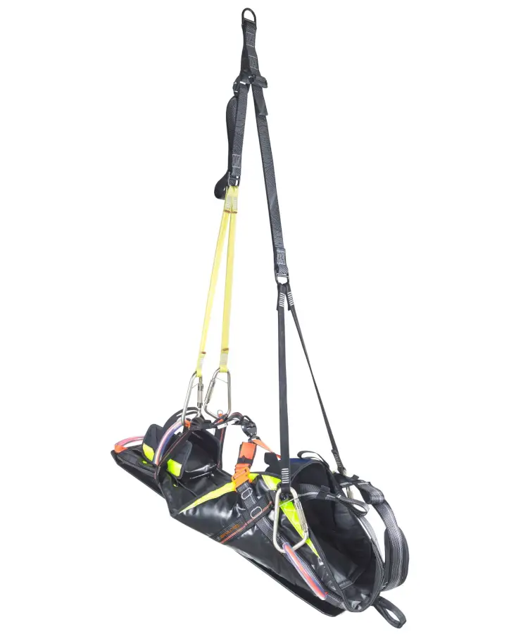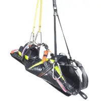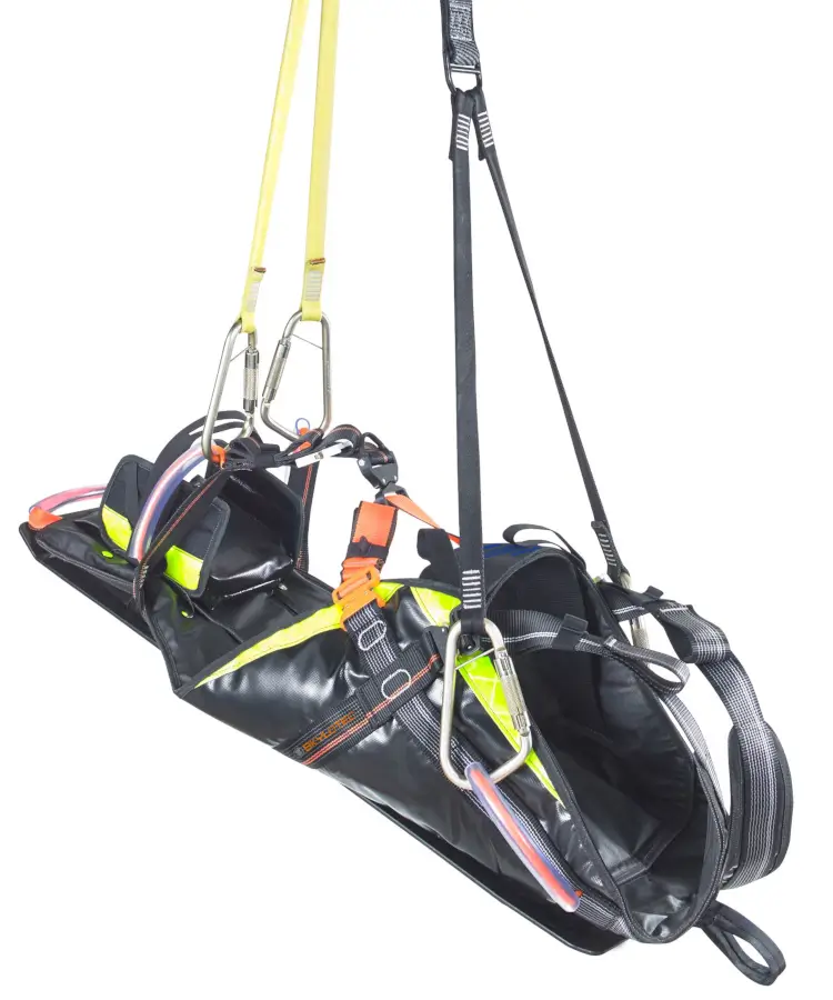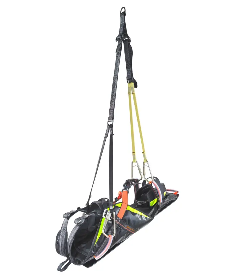 Zudem lassen sich spezielle Aufhängungen an den Trageschlaufen befestigen. Diese können mit einem mobilen Anschlagsystem verbunden werden, mit dem Verletzte beispielsweise aus einem Kanalschacht gerettet werden können. Für ein schnelles Handling sorgt ein klares Farbsystem: alle Anschlagpunkte sind orange gekennzeichnet. CONREST verfügt über eine stabile und massive Gleitplatte, die das sichere Bewegen des Patienten über Kanten oder Hindernisse garantiert. Ein Fußsack, mit dem bei Bedarf auch die Füße fixiert werden können, gehört ebenfalls zur Standardausstattung.