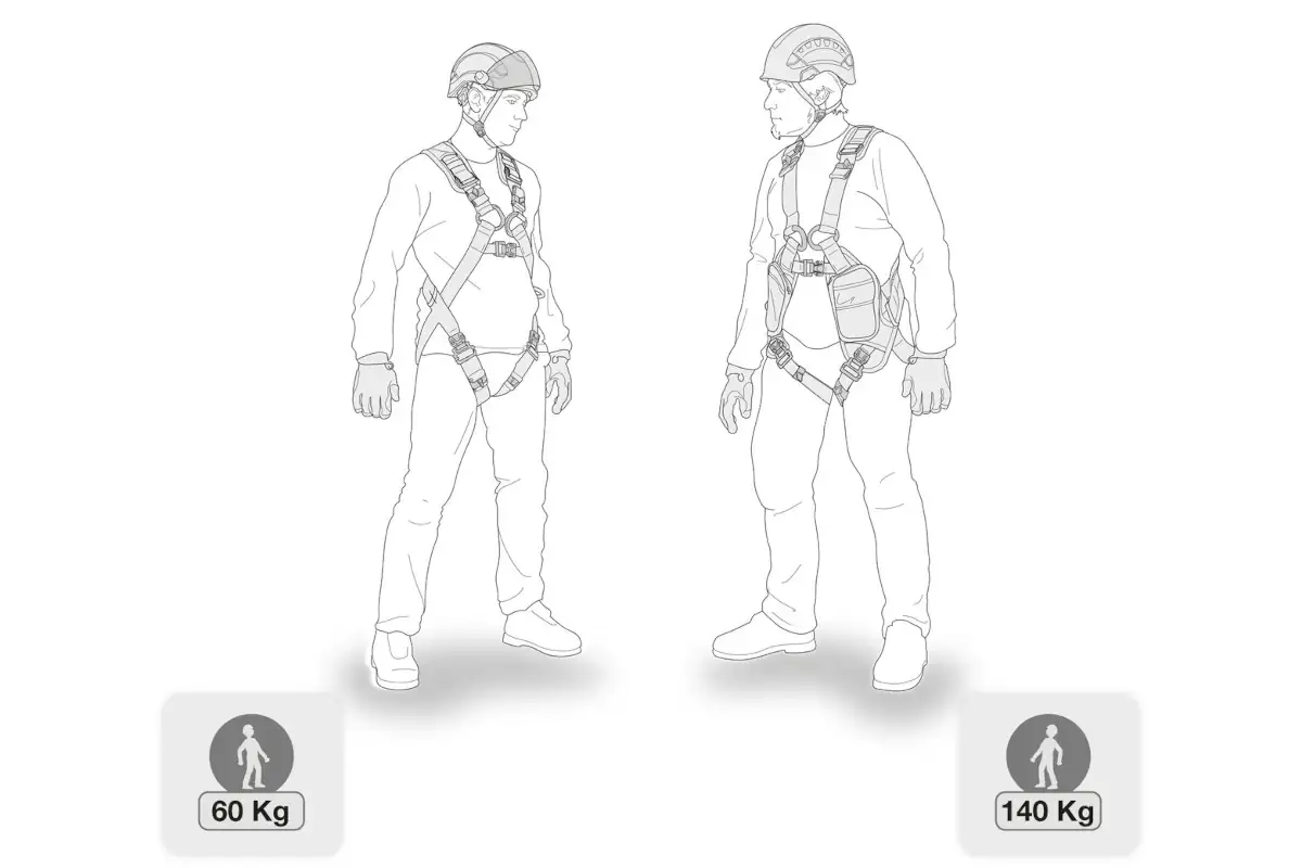 - Dank des besonders kompakten Designs des Falldämpfers wird die anwendende Person bei der Fortbewegung nicht behindert.