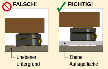 Hinweis: Alle LPL-Zylinder benötigen eine stabile Auflagefläche, um die Last setzungsfrei aufzunehmen. Die Verwendung dieser Zylinder auf einem Untergrund mit unzureichender Tragfähigkeit, wie Sand, Schlamm oder anderen unebenen Flächen, kann zu Beschädigungen des Zylinders führen.