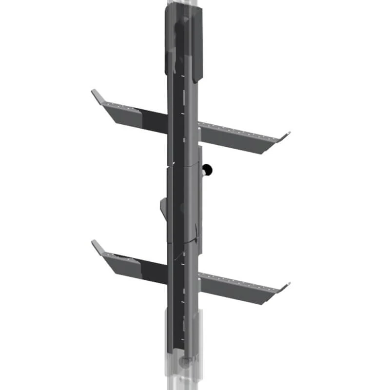 Ausstiegsvorrichtung ohne Sprossen. Zum festen Einbau innerhalb des Steigweges. Die Ausstiegsvorrichtung wird komplett mit einem Steigschutzschienensystem von 560 mm Länge und einem Kupplungsstück geliefert. Bei nachträglichem Einbau muss ein 560 mm langes Stück der bestehenden Steigschutzschiene entfernt und die Schnittflächen mit Zinkspray vor Rost geschützt werden.