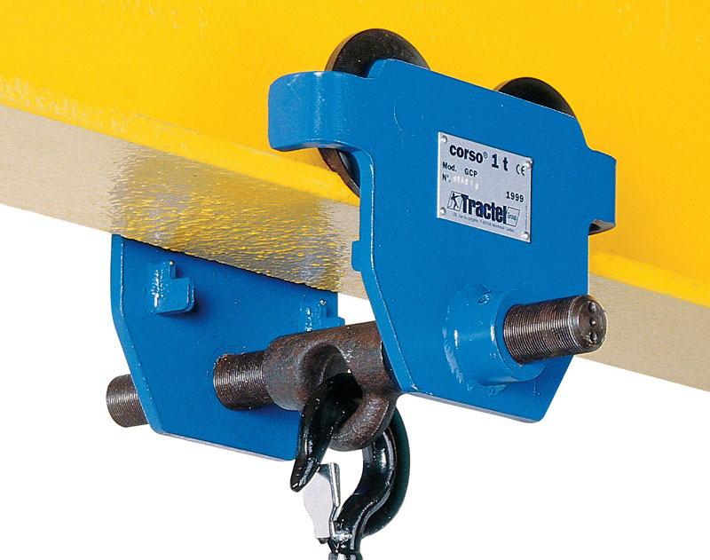 Das Rollfahrwerk Corso von Tractel ist ein manuell verfahrbares Fahrwerk für den Materialtransport an I- und H-Trägern und bildet einen sicheren Hebeankerpunkt für Handhebezeuge wie greifzug, bravo, tralift oder minifor.
