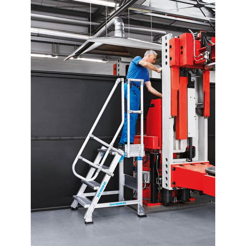 • Inkl. einseitiger Handlauf und Plattformgeländer (nach DIN EN ISO 14122 ab 500 mm senkrechter Höhe Pflicht).