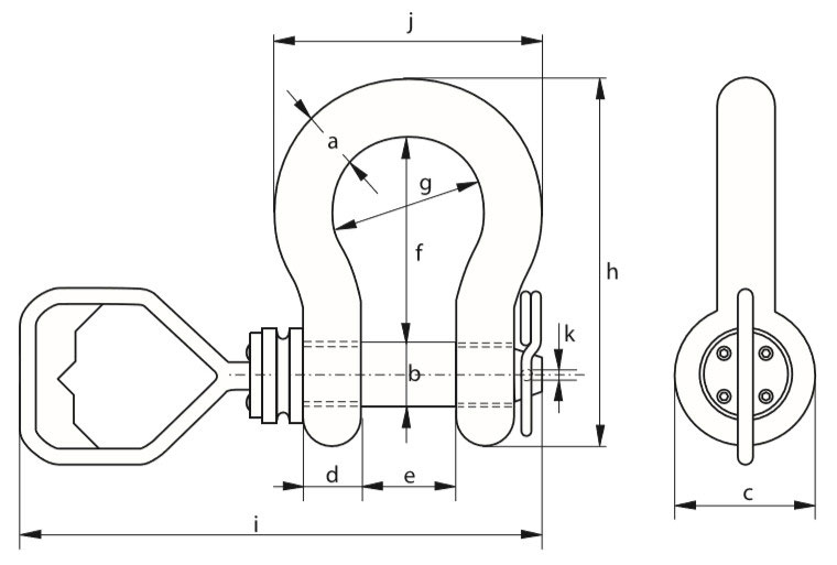 | Produkttyp | ROV Polar Schäkel P-5361D mit konischem Bolzen und D-Griff |