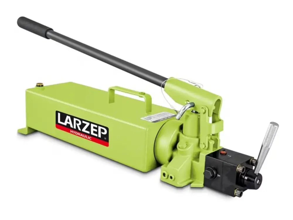 Zweistufige Pumpen sorgen für einen schnellen Vorschub des Zylinders, bis der Kontakt mit der Last hergestellt ist. Ab hier schalten die Ventile automatisch in den Lastgang wodurch das Heben am Hebel einfacher wird aber nur langsam von statten geht.