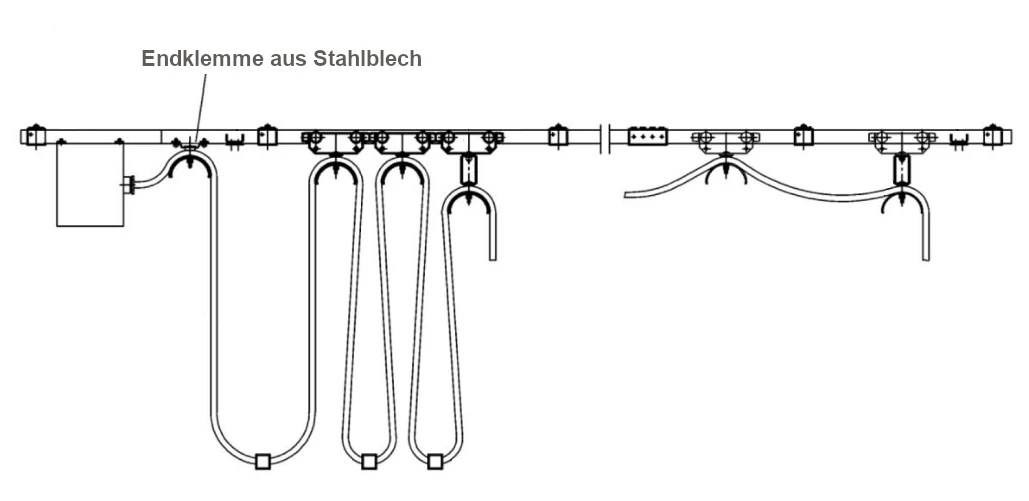 Während die Leitungswagen an der bewegten Maschine schleppend mitlaufen, bleibt die Endklemme fest montiert und bildet damit den statischen Einspeisepunkt des Systems.