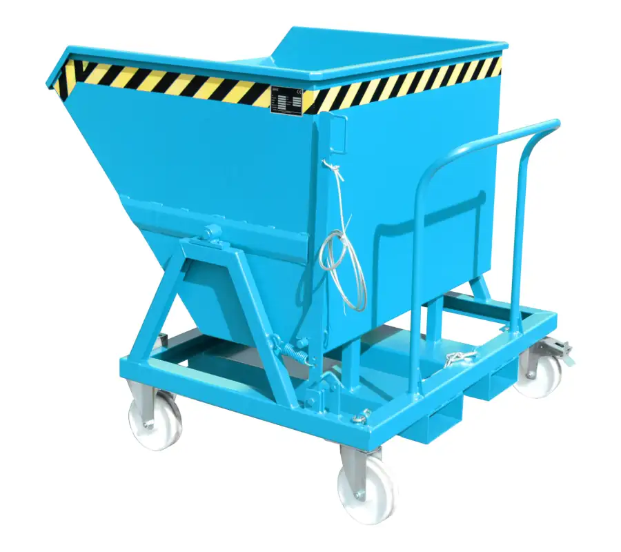 Die Späne-Kippmulde Typ KS lässt sich sowohl ebenerdig von Hand als auch mittels Gabelstapler über Großcontainer entleeren. Im Transport und der Art der Entleerung bietet diese Kippmulde eine hohe Flexibilität. Durchgehend geschlossene Einfahrlaschen sorgen für eine einfache Aufnahme mit einem Gabelstapler. Während des Transports, sichert eine Kette den Behälter auf den Gabelzinken und verhindert ein unbeabsichtigtes Abrutschen.