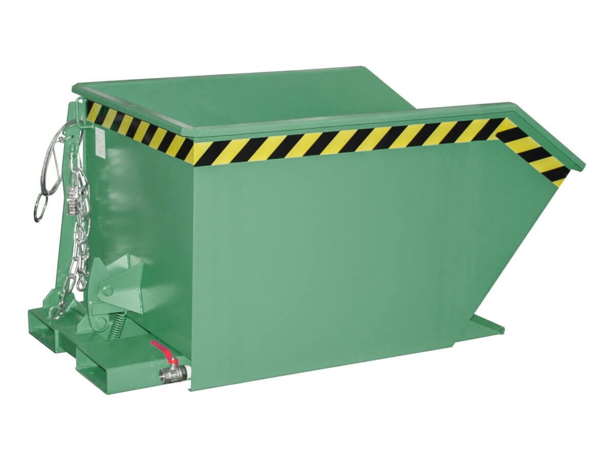Die Spänebehälter Typ SGU empfehlen sich speziell zum Sammeln und Trennen von Flüssigkeiten und Feststoffen. Hierfür sind ihre Muldenböden mit einem Lochblech überspannt das 100 mm oberhalb des Bodens reichlich Volumen für durchsickernde Emulsion bietet. Die mit Kühlschmierstoffen verunreinigten Späne werden oberhalb des Lochblechs gesammelt. Die Mulden sind öl- und wasserdicht verschweißt und verfügen über einen Kugelhahn über den die Flüssigkeit kontrolliert abgelassen werden kann. Das Wannenblech ist stabilisierend mit einem umlaufenden Randprofil verkleidet. Einfahrtaschen im Grundrahmen ermöglichen die Aufnahme mit einem Gabelstapler. Das Entleeren des Spänebehälters SGU erfolgt per Seilzug vom Staplersitz aus.