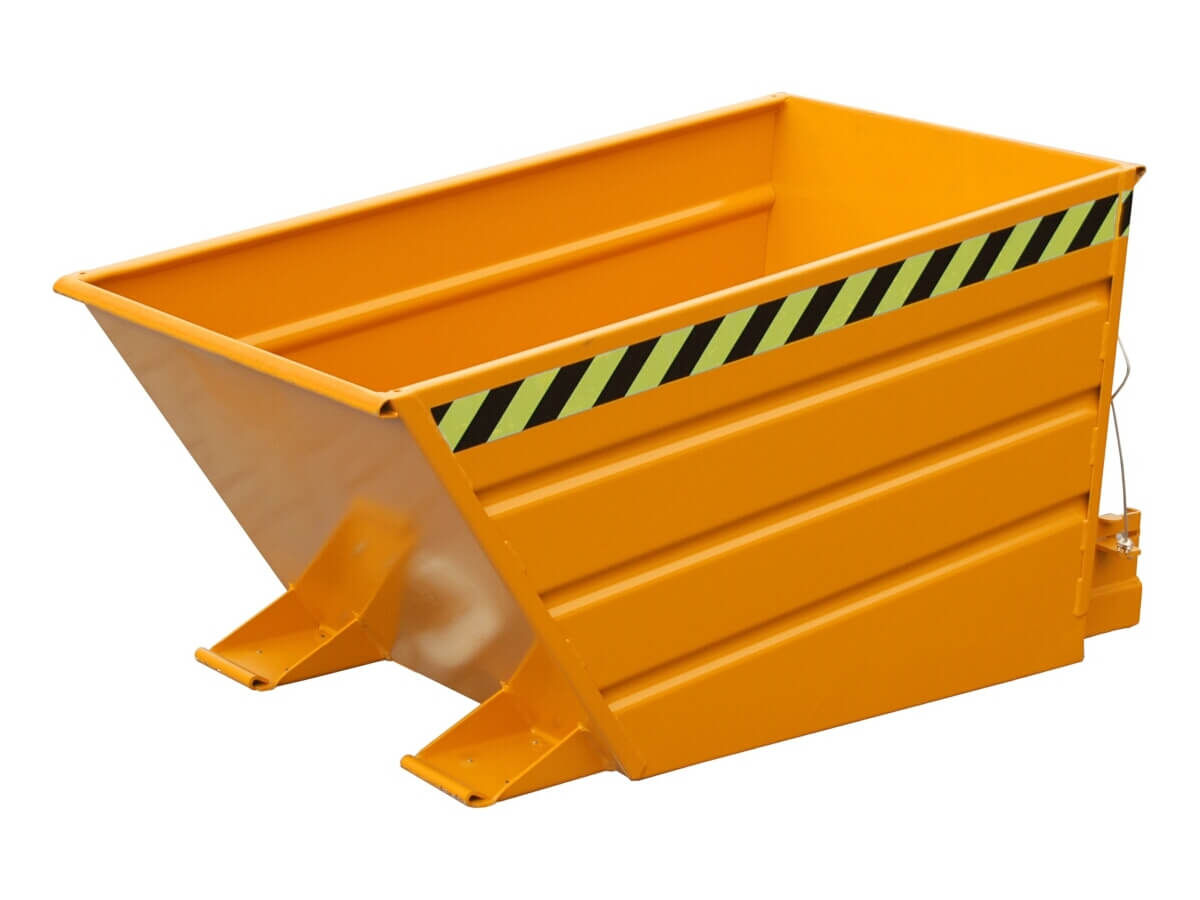 Die Behälter verfügen über einen innovativen Hebelverschluss, der es dem Staplerfahrer erlaubt, das Kippen des Behälters per Seilzug vom Fahrersitz aus einzuleiten. Über die Fernauslösung ist das Kippen aus jeder Höhe möglich. Durchgehend geschlossen Staplereinfahrtaschen erleichtern die Aufnahme mit einem Gabelstapler. Optional stehen Rollen zur Verfügung, mit denen er im innerbetrieblichen Einsatz leicht von Hand verfahren werden kann. Außerdem ist ein verzinkter Deckel, eine öl- und wasserdichte Verschweißung und eine einstellbare Kippbremse auf Wunsch erhältlich.