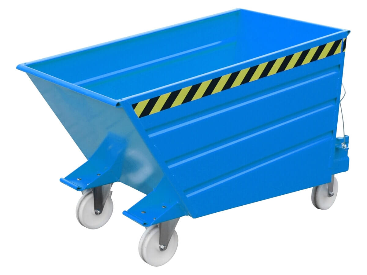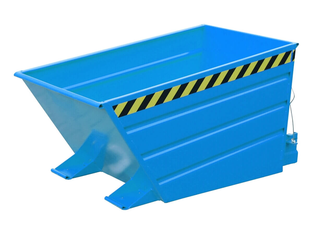 Die Behälter verfügen über einen innovativen Hebelverschluss, der es dem Staplerfahrer erlaubt, das Kippen des Behälters per Seilzug vom Fahrersitz aus einzuleiten. Über die Fernauslösung ist das Kippen aus jeder Höhe möglich. Durchgehend geschlossen Staplereinfahrtaschen erleichtern die Aufnahme mit einem Gabelstapler. Optional stehen Rollen zur Verfügung, mit denen er im innerbetrieblichen Einsatz leicht von Hand verfahren werden kann. Außerdem ist ein verzinkter Deckel, eine öl- und wasserdichte Verschweißung und eine einstellbare Kippbremse auf Wunsch erhältlich.