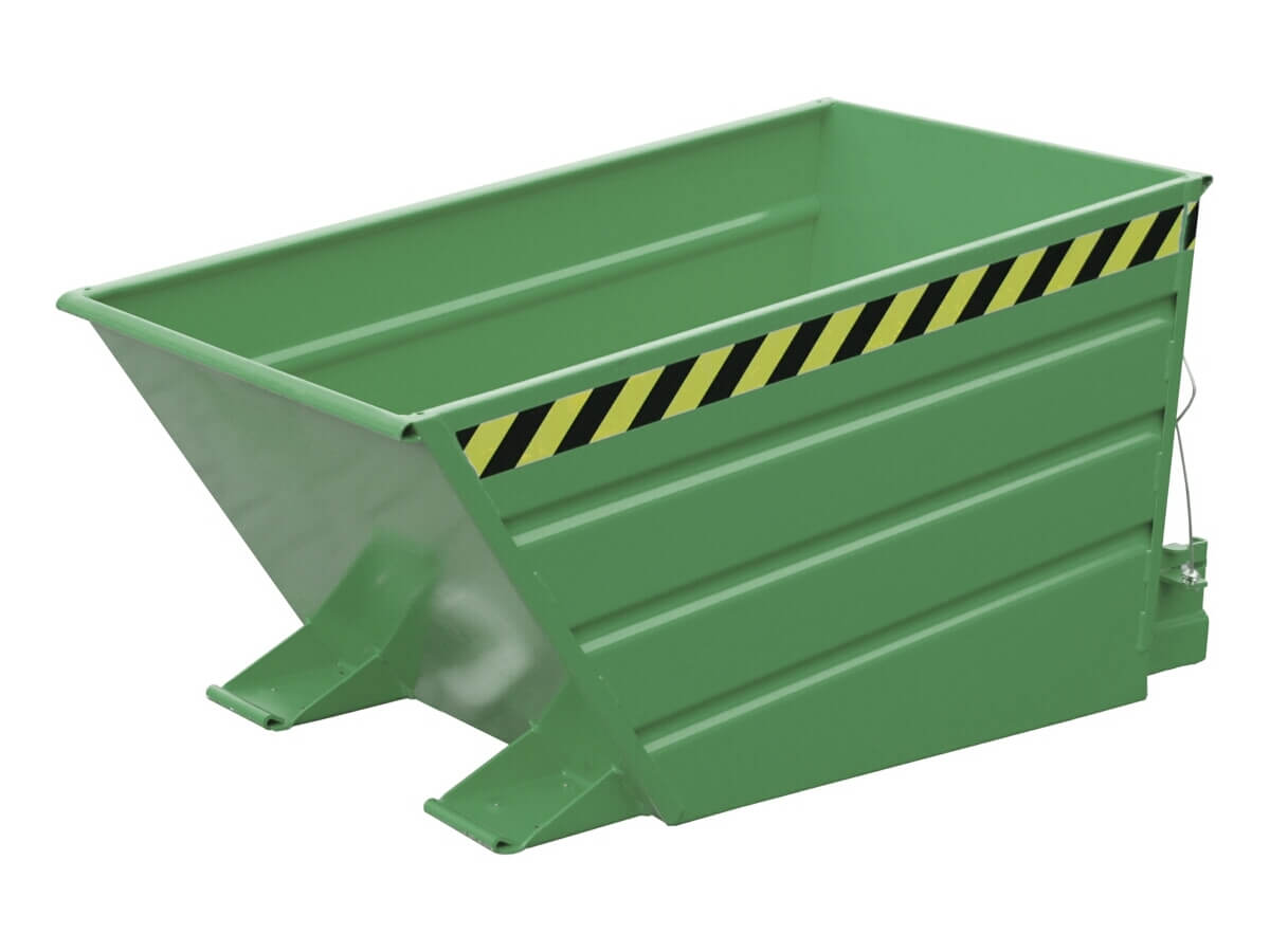 Die Behälter verfügen über einen innovativen Hebelverschluss, der es dem Staplerfahrer erlaubt, das Kippen des Behälters per Seilzug vom Fahrersitz aus einzuleiten. Über die Fernauslösung ist das Kippen aus jeder Höhe möglich. Durchgehend geschlossen Staplereinfahrtaschen erleichtern die Aufnahme mit einem Gabelstapler. Optional stehen Rollen zur Verfügung, mit denen er im innerbetrieblichen Einsatz leicht von Hand verfahren werden kann. Außerdem ist ein verzinkter Deckel, eine öl- und wasserdichte Verschweißung und eine einstellbare Kippbremse auf Wunsch erhältlich.