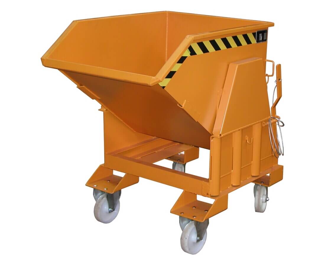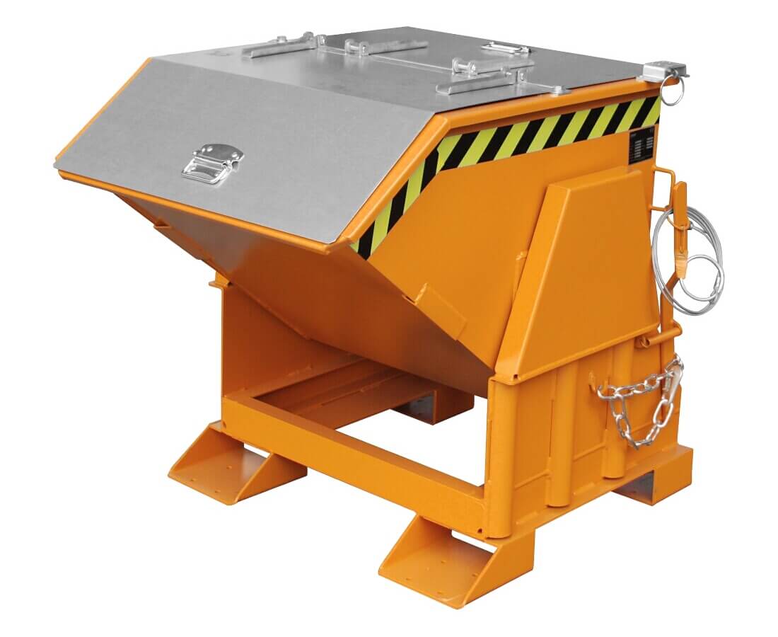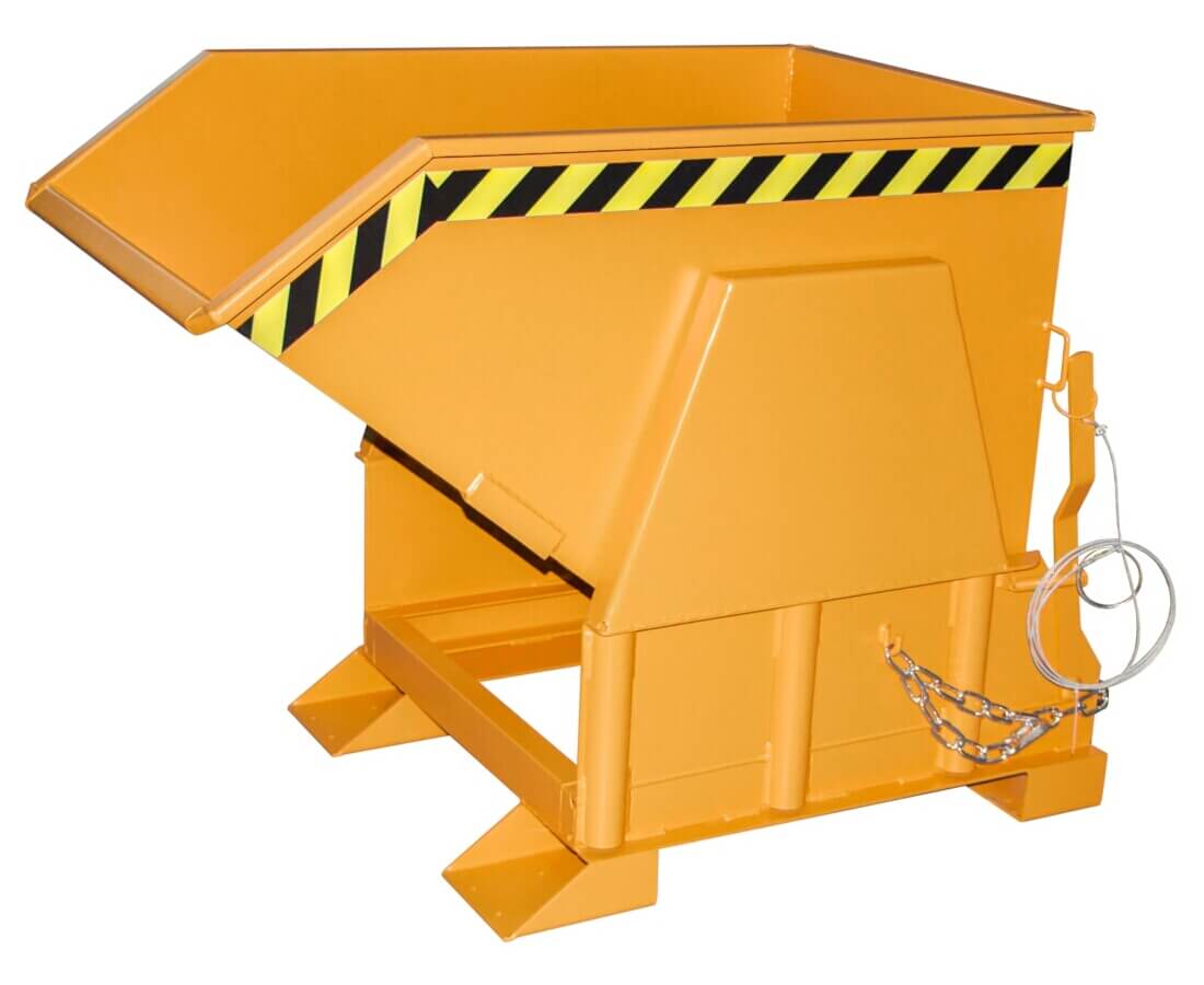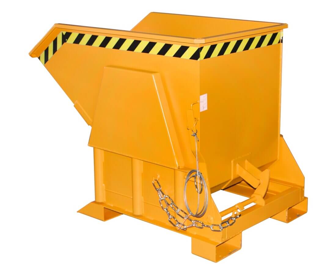 Der Kleincontainer Typ BK ist das Original unter den Kippbehältern. Mit seiner großen robusten Mulde eignet er sich zum Sammeln und Entsorgen von Schüttgütern, Rohstoffen und Industrieabfällen. Die Wanne mit umlaufendem Randprofil verfügt über einen gabelstaplerschonenden Abrollmechanismus. Ihr günstiger Lastschwerpunkt gewährleistet ein vollständiges Entleeren und ein Leichtes wieder Einfahren der Mulde. Der Kippvorgang kann aus jeder Höhe bequem per Seilzug vom Fahrersitz eingeleitet werden. Der stabile Grundrahmen mit Einfahrtaschen ermöglicht die Aufnahme mit einem Gabelstapler.