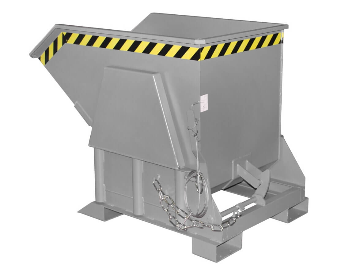 Der Kleincontainer Typ BK ist das Original unter den Kippbehältern. Mit seiner großen robusten Mulde eignet er sich zum Sammeln und Entsorgen von Schüttgütern, Rohstoffen und Industrieabfällen. Die Wanne mit umlaufendem Randprofil verfügt über einen gabelstaplerschonenden Abrollmechanismus. Ihr günstiger Lastschwerpunkt gewährleistet ein vollständiges Entleeren und ein Leichtes wieder Einfahren der Mulde. Der Kippvorgang kann aus jeder Höhe bequem per Seilzug vom Fahrersitz eingeleitet werden. Der stabile Grundrahmen mit Einfahrtaschen ermöglicht die Aufnahme mit einem Gabelstapler.