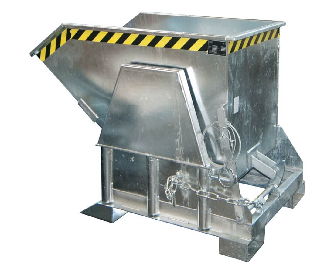 Der Kleincontainer Typ BK ist das Original unter den Kippbehältern. Mit seiner großen robusten Mulde eignet er sich zum Sammeln und Entsorgen von Schüttgütern, Rohstoffen und Industrieabfällen. Die Wanne mit umlaufendem Randprofil verfügt über einen gabelstaplerschonenden Abrollmechanismus. Ihr günstiger Lastschwerpunkt gewährleistet ein vollständiges Entleeren und ein Leichtes wieder Einfahren der Mulde. Der Kippvorgang kann aus jeder Höhe bequem per Seilzug vom Fahrersitz eingeleitet werden. Der stabile Grundrahmen mit Einfahrtaschen ermöglicht die Aufnahme mit einem Gabelstapler.