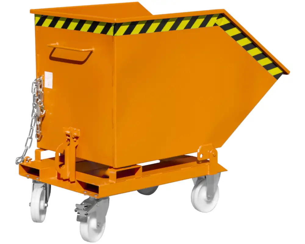 Die Kippmulde Typ KK von Bauer eignet sich ideal zum Sammeln, Transportieren und Entsorgen von Schüttgütern und Industrieabfällen. Ihre kastenförmige Mulde ist kippbar gelagert und zum Entleeren von Hand mit einem Handgriff versehen. Ihr Grundrahmen ist mit durchgehend geschlossenen Einfahrtaschen ausgestattet, was das Einführen von Gabelstaplerzinken erleichtert.