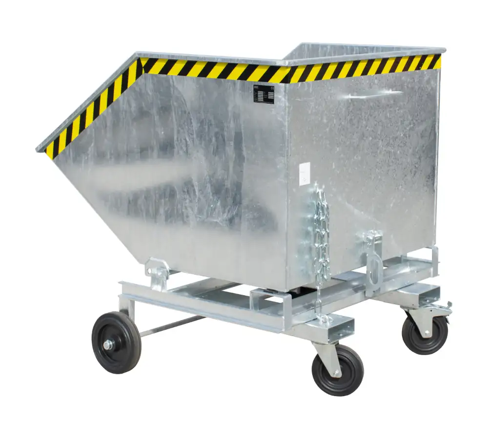 Der Kastenwagen Typ KW-ET eignet sich zum Sammeln von Schüttgütern oder als mobile Auffangwanne für Flüssigkeiten. Seine großen Vollgummi-Räder verleihen ihm gute Fahreigenschaften. Der Handgriff am oberen Rand der Mulde hilft beim Manövrieren und beim Entleeren von Hand. Der Kastenwagen Typ KW-ET ist zusätzlich mit Einfahrtaschen zur Aufnahme mit einem Gabelstapler ausgestattet. So lässt er sich ebenerdig als auch von den Staplerzinken aus Entleeren. Die Mulde ist aus einer robusten Stahlblechkonstruktion gefertigt und serienmäßig öl- und wasserdicht verschweißt.