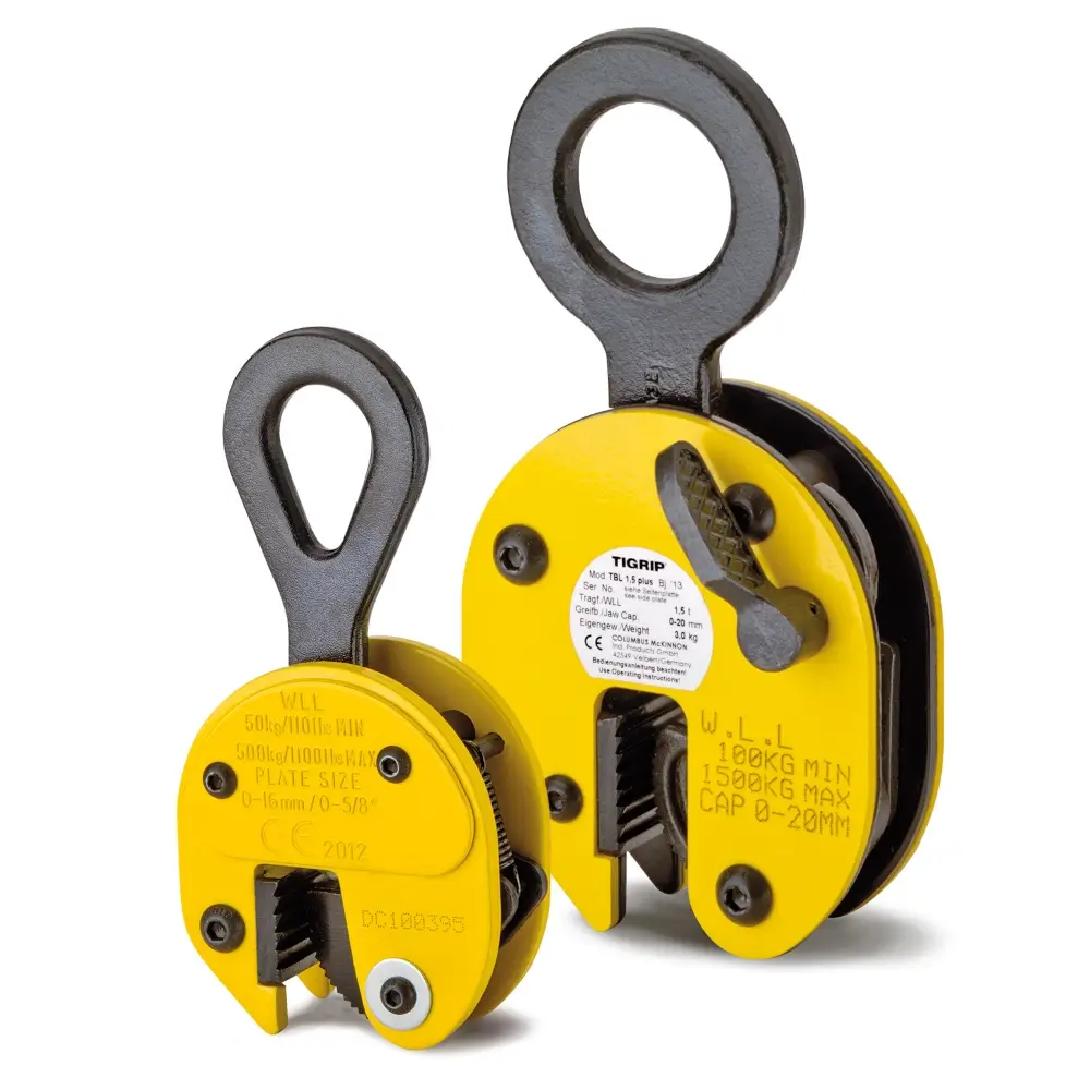 Den Blechgreifer TBLplus gibt es in Größen von 500 kg bis zu einer Tragkraft von 3 t. In diesem Traglastbereich hat der TBL eine starre Aufhängeöse. Mit frei um 180° schwenkbarer Aufhängeöse ist der Blechgreifer unter der Bezeichnung TBSplus zu haben. In dieser Ausführung eignet er sich besonders zum Ablegen von Blechen, beispielsweise auf Maschinentischen oder auf Stapeln. In den Tragkräften 4 bis 30 Tonnen ist er zur Zeit nicht in der plus-Ausführung zu haben.