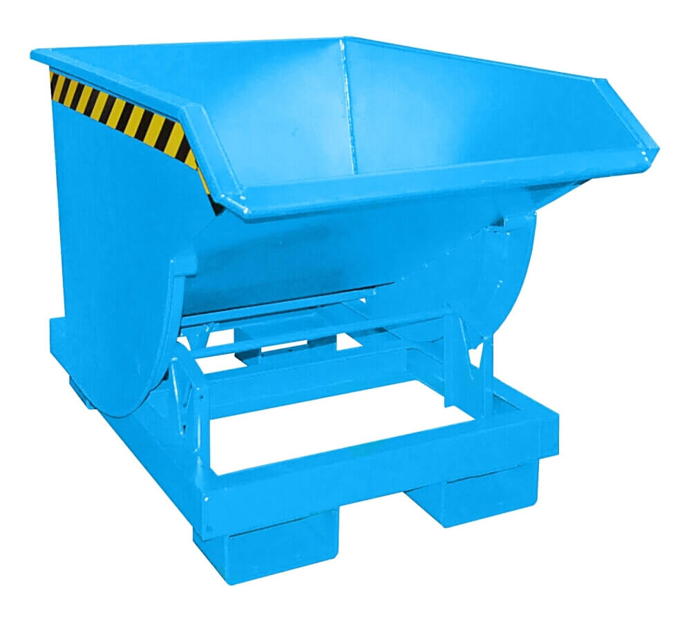 Der Kippbehälter Typ BKM bietet ein großes Fassungsvermögen bei zugleich hoher Tragkraft. Ideal für schwere Schüttgüter oder Industrieabfälle, die gesammelt, transportiert und verladen, umgeschichtet oder entsorgt werden sollen. Seine große Mulde kippt über einen Abrollmechanismus problemlos ab. Der günstige Lastschwerpunkt ermöglicht ein staplerschonendes Entleeren und vereinfacht das Wieder-Aufrichten der Mulde. Ausgelöst wird das Kippen über einen Seilzug bequem vom Fahrersitz aus. Der Kippvorgang kann in jeder Höhe erfolgen und sogar ebenerdig durchgeführt werden.