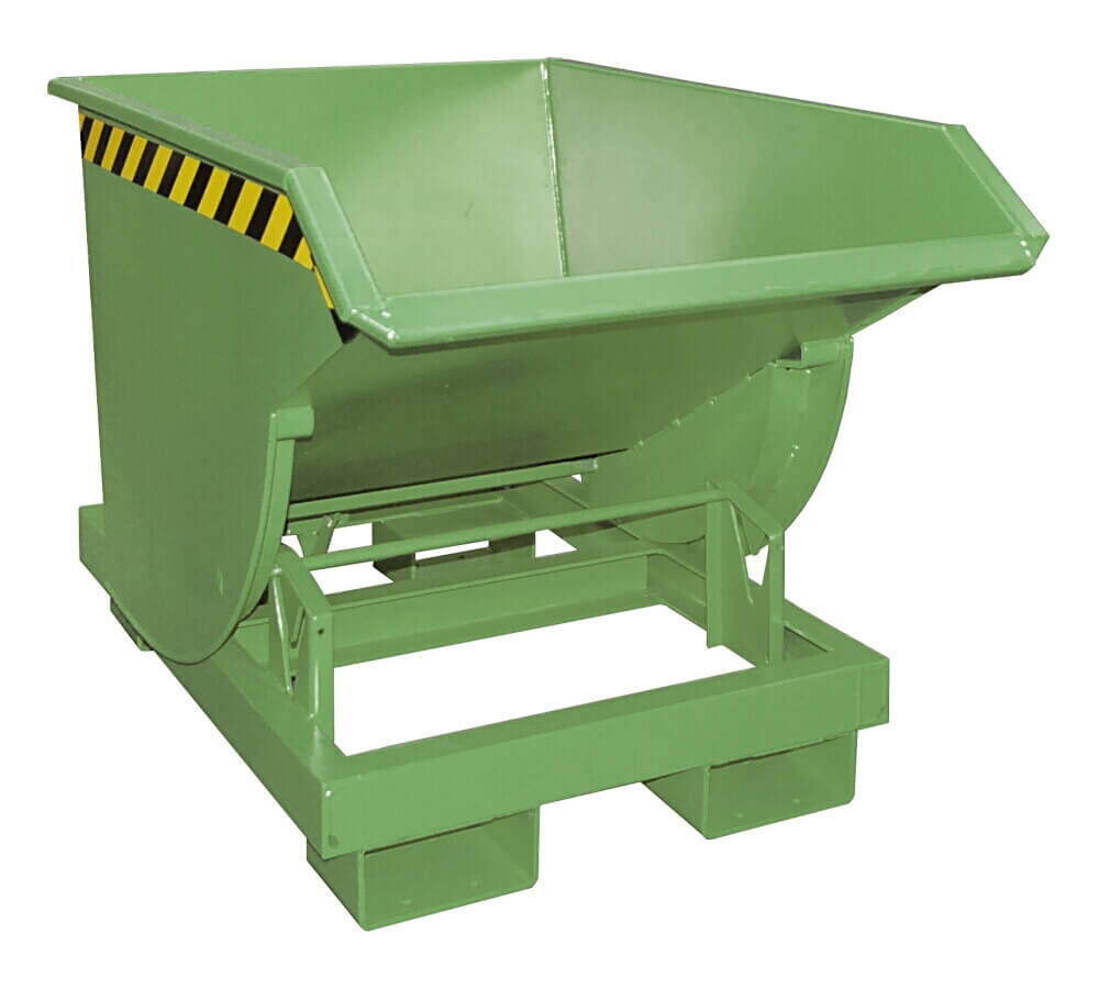 Der Kippbehälter Typ BKM bietet ein großes Fassungsvermögen bei zugleich hoher Tragkraft. Ideal für schwere Schüttgüter oder Industrieabfälle, die gesammelt, transportiert und verladen, umgeschichtet oder entsorgt werden sollen. Seine große Mulde kippt über einen Abrollmechanismus problemlos ab. Der günstige Lastschwerpunkt ermöglicht ein staplerschonendes Entleeren und vereinfacht das Wieder-Aufrichten der Mulde. Ausgelöst wird das Kippen über einen Seilzug bequem vom Fahrersitz aus. Der Kippvorgang kann in jeder Höhe erfolgen und sogar ebenerdig durchgeführt werden.