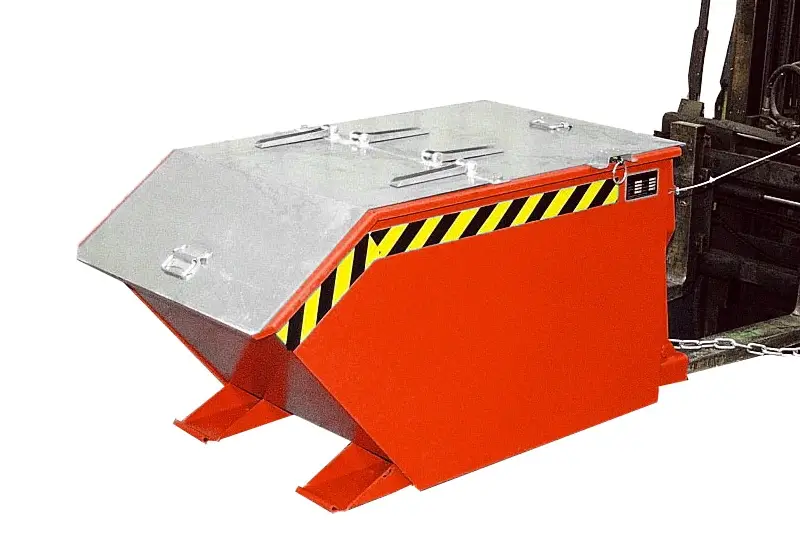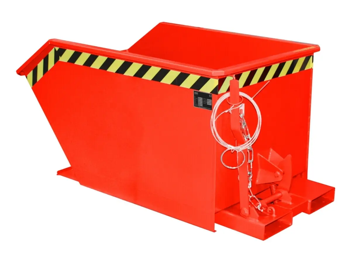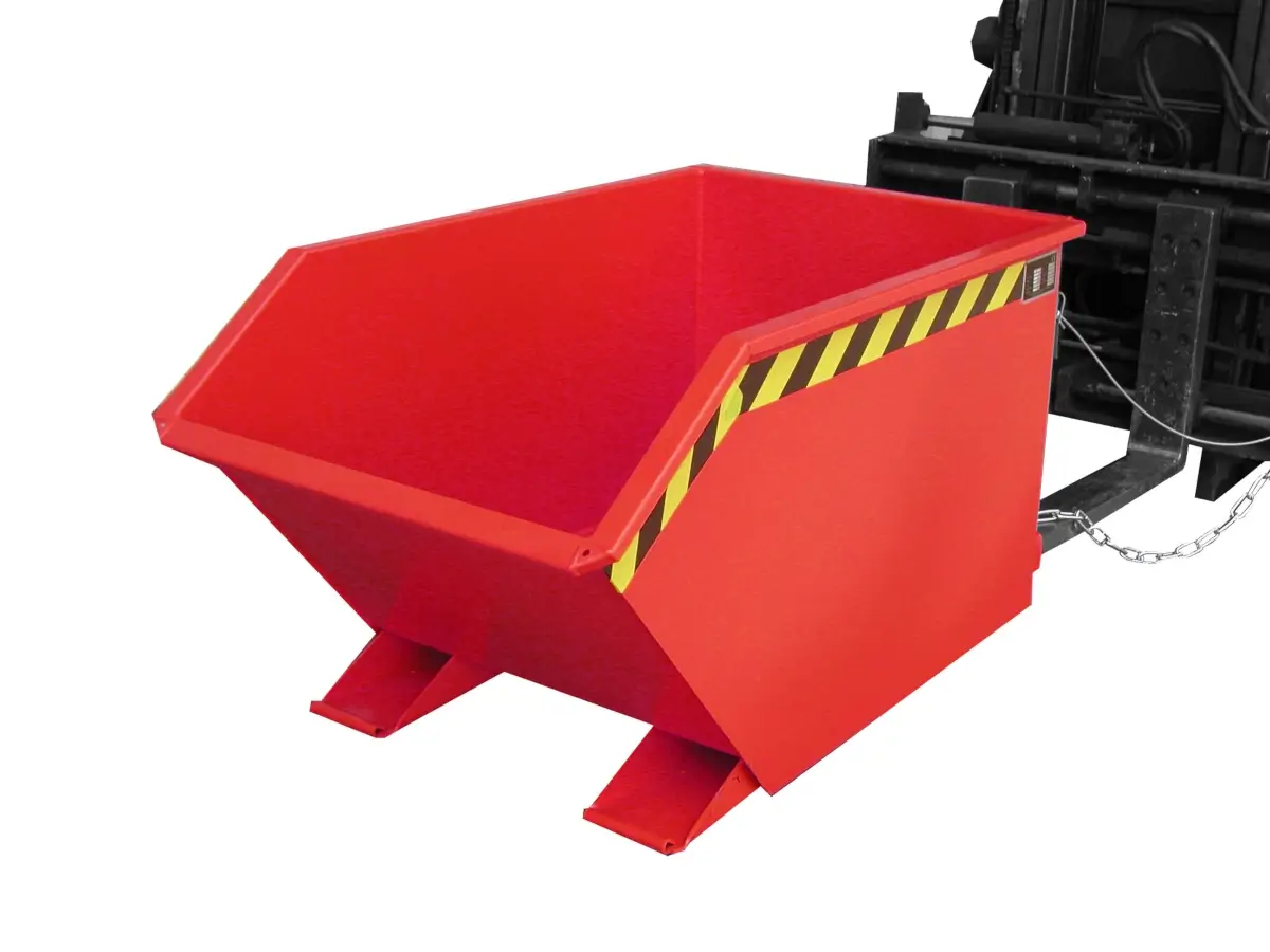 Die Kippbehälter GU von Bauer sind ideal zum Sammeln, Transportieren und Entsorgen von Stückgütern und Abfällen. Der Typ GU ist das Original unter den Kippbehältern. Er verfügt über einen günstigen Kippwinkel, der eine vollständige Entleerung gewährleistet. Das Kippen wird bequem vom Fahrersitz aus über einen Seilzug ausgelöst. Die körperschonende Fernauslösung schützt den Fahrer zugleich vor herabfallenden Gegenständen. Zudem ist ein Ausklinken der Mulde durch Zug am Seil von jeder Höhe aus möglich. Das Wannenblech mit umlaufendem Randprofil ist auf dem stabilen Grundrahmen gelagert und über eine Schutzvorrichtung gegen unbeabsichtigtes Auskippen gesichert. Der Grundrahmen ist mit durchgehend geschlossenen Einfahrtaschen ausgestattet, die eine leichte Aufnahme mit einem Gabelstapler ermöglichen.