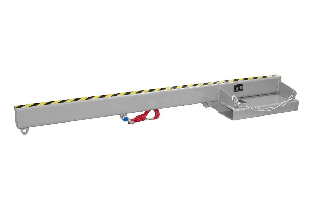 Der Lastarm LA 2400-5,0 von Bauer ist ein starrer Kranausleger mit 3 Anschlagpunkten. Das Stapleranbaugerät besteht aus einer robusten Stahlkonstruktion und eignet sich ideal zum Heben von Lasten aus der Distanz. Der Kranarm macht aus ihrem Gabelstapler einen Kleinkran. Einfahrtaschen ermöglichen eine Aufnahme mit Gabelstapler. Eine Kettensicherung verhindert unbeabsichtigtes Abrutschen während des Transports.