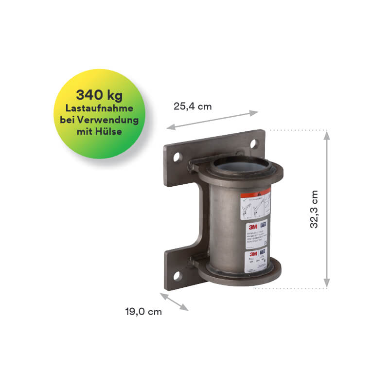 Die HC-Mastausleger-Basis zur Wandmontage besteht aus einer Mastauslegerhülse mit daran befestigter Montageplatte. Die Basis wird zur temporärens Montage des Davits am vertikalen Bauwerk verwendet. Durch die Kunststoffbeschichtung im Inneren der Mastauslegerhülse ist der Mastausleger in der Hülse frei drehbar.