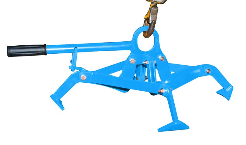 Der Fassgreifer Typ 4P beschleunigt Ihren Fassumschlag und schafft Sicherheit beim Transport. Er eignet sich für Stahl-Spundfässer, Stahl-Deckelfässer, Kunststoff-L-Ringfässer und Kunststoff-Doppel-L-Ringfässer mit einem Inhalt von 200 bis 220 Litern. Zur Aufnahme mit dem Fassgreifer 4P müssen die Fässer aufrecht stehen. Der Greifer wird in den Haken eines Hebezeuges eingehängt und über dem aufzunehmenden Fass abgesenkt. Die Sperrklinke am Führungsrohr wird ausgeklinkt und der Fassgreifer über dem Fass in Position gebracht. Sobald alle Greifarme den Fassrand sicher untergreifen, kann das Fass angehoben werden. Durch den Zug am Laststrang packt der Greifer das Fass umso fester. Beim Abstellen der Last löst sich der Fassgreifer 4P selbsttätig und gibt das Fass wieder frei. Die Greifmethode des Fassgreifers Typ 4P ist für das Fass äußerst schonend, da es an vier Punkten gleichzeitig gegriffen und angehoben wird.