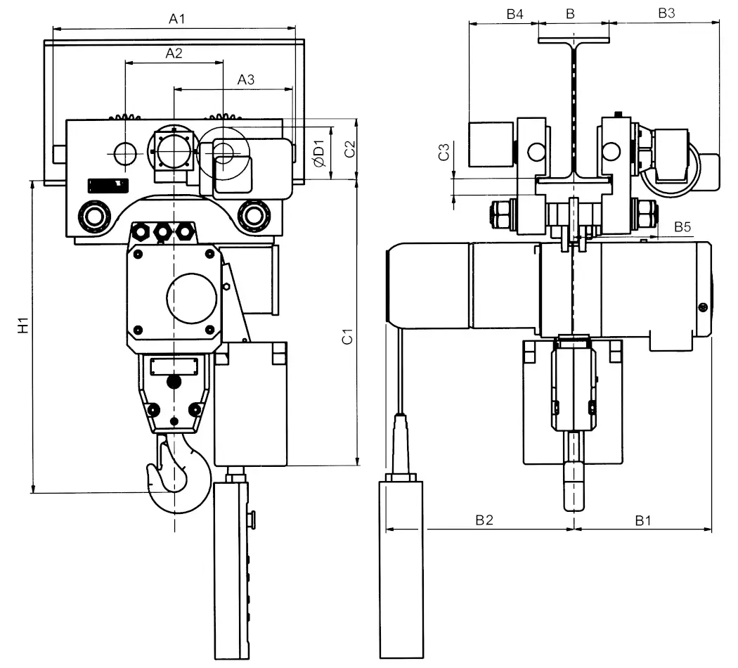 Der Elektrokettenzug AK ist serienmäßig mit Ösenaufhängung oder mit unterschiedlichen Fahrwerken erhältlich. Es stehen passende Rollfahrwerke, Haspelfahrwerke oder Elektrofahrwerke zur Verfügung. Hierbei spielt die Flanschbreite eine Rolle, da diese bei den Fahrwerken auf zwei Bereiche unterteilt ist. Zudem muss bei der Bestellung des Elektrokettenzuges die Aufhängehöhe angegeben werden, nach der sich die Steuerkabellänge und die Länge der Haspelkette richtet. Standardmäßig liegt diese bei 3 m. Die Elektrofahrwerke sind mit 1 oder 2 Geschwindigkeiten erhältlich und alternativ auch mit höheren Katzfahrgeschwindkeiten auszustatten.