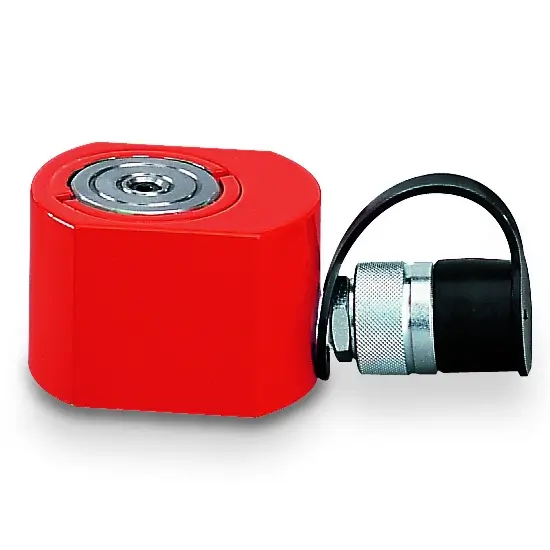 Ausgestattet ist der hydraulik Flachzylinder Modell YFS 20/15 mit einem Federrückzug. Dadurch fährt der unbelastete Hydraulikzylinder nach Druckabfall wieder ein. Serienmäßig ist der hydraulik Flachzylinder mit der Kupplungsmuffe CFY - 1 versehen. Diese Kupplungsmuffe ist bei der kompletten Werkstatthydraulik von Yale kompatibel.