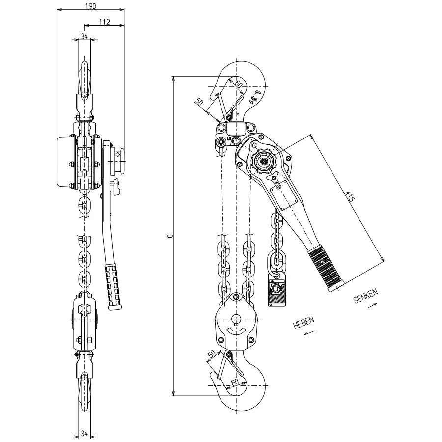 Mit dem Ratschenzug Modell LB werden in der Industrie bevorzugt schwere Zug-, Hebe- und Spannarbeiten durchgeführt. Sein Präzisionsgetriebe mit induktivgehärteten Zahnrädern ist extrem laufruhig, leistungsstabil und langlebig. Auch die tragenden Teile sind gehärtet und verleihen dem Gehäuse eine unvergleichlich große Stabilität.