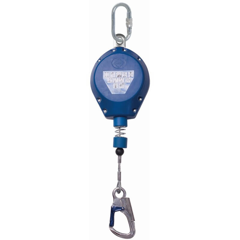 Das Gerät verfügt über ein leichtes, schlagfestes Kunststoffgehäuse und ein verzinktes Stahlseil Ø 4.8 mm als Verbindungsmittel, das sich automatisch ein- und auszieht und so die Fallhöhe minimiert.