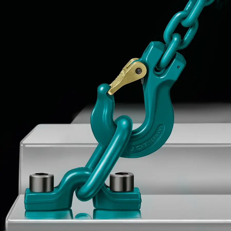 Hinweis: Lastbügel muss frei beweglich sein und darf sich nicht an Kanten oder am Anschlagpunkt abstützen.