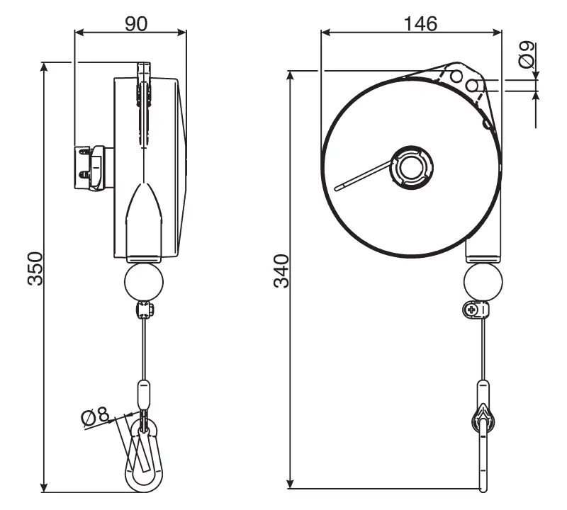 Die Abwicklung des Seils darf niemals vollständig erfolgen. Dies lässt sich durch eine genügend große Hub-Reserve bewerkstelligen. So muss schon beim Kauf des Federzuges ein ausreichender Seilauszug bedacht werden.