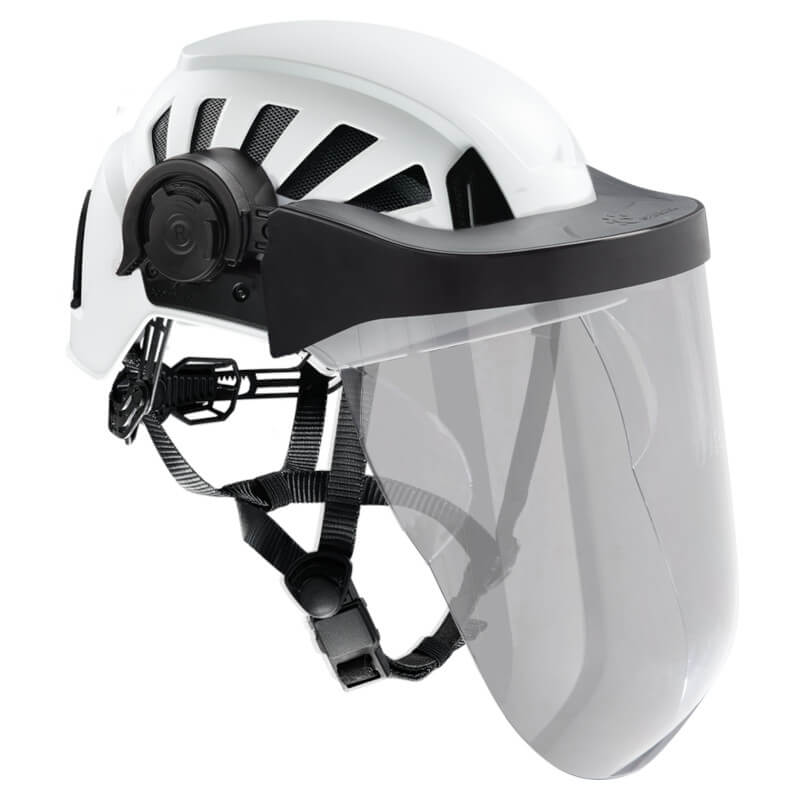 • Geformtes Polykarbonat-Visier mit hohem Stoßschutz und Schutz vor Lichtbögen